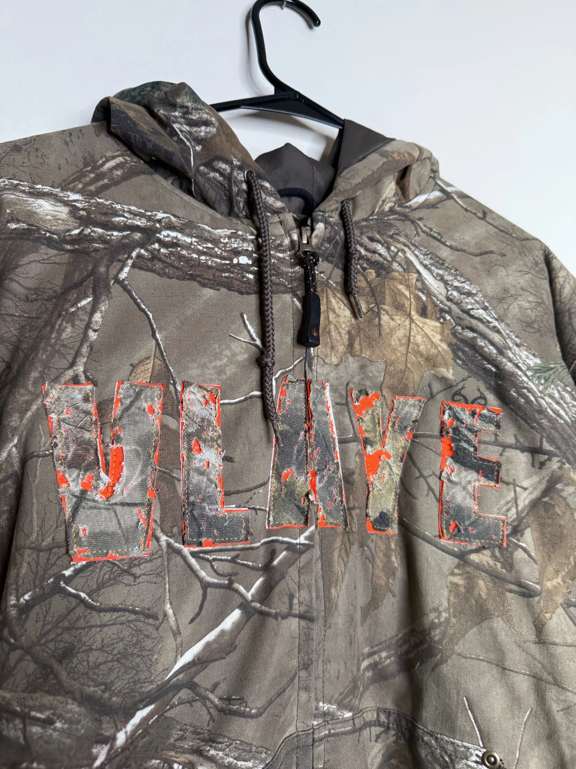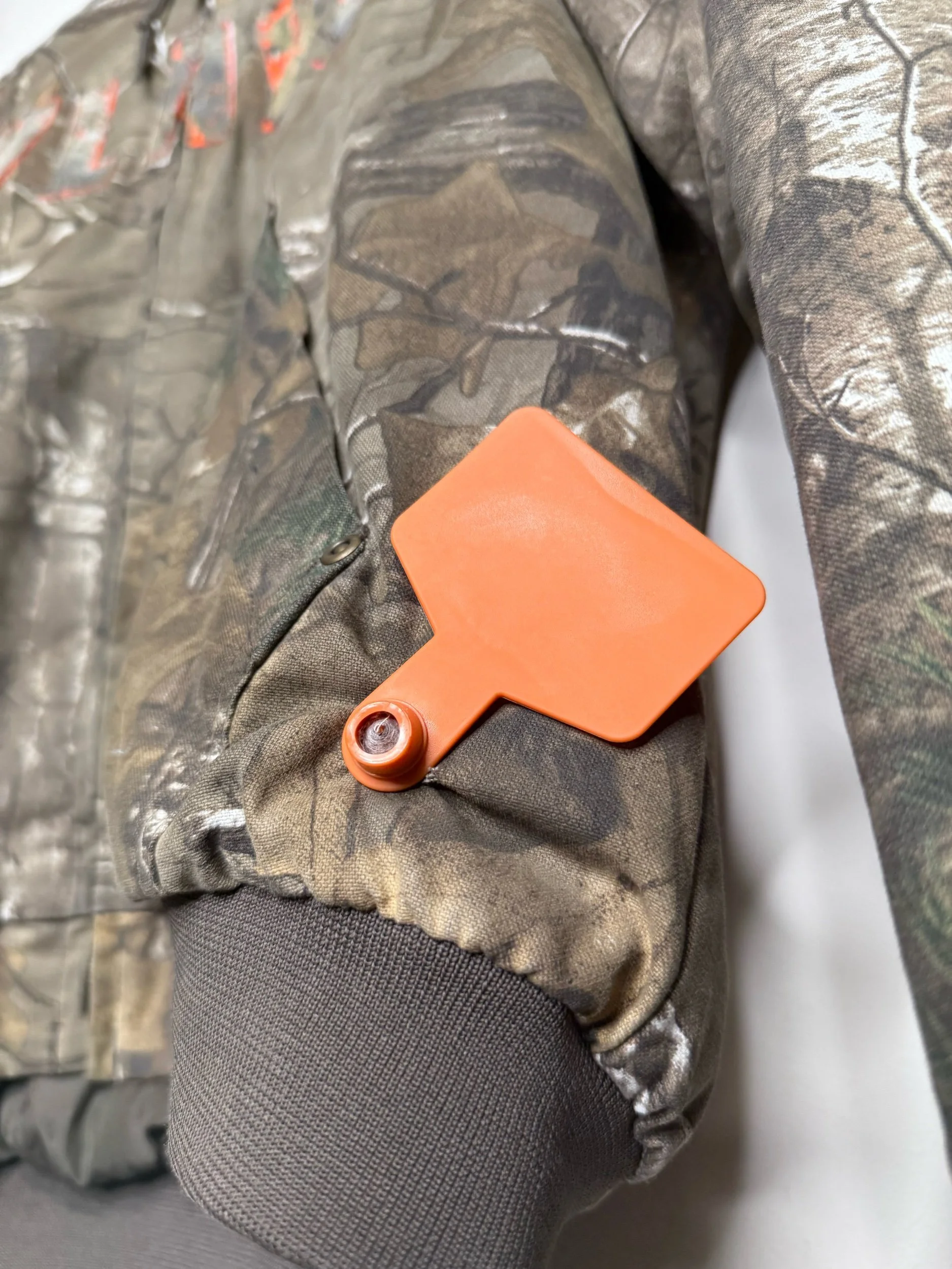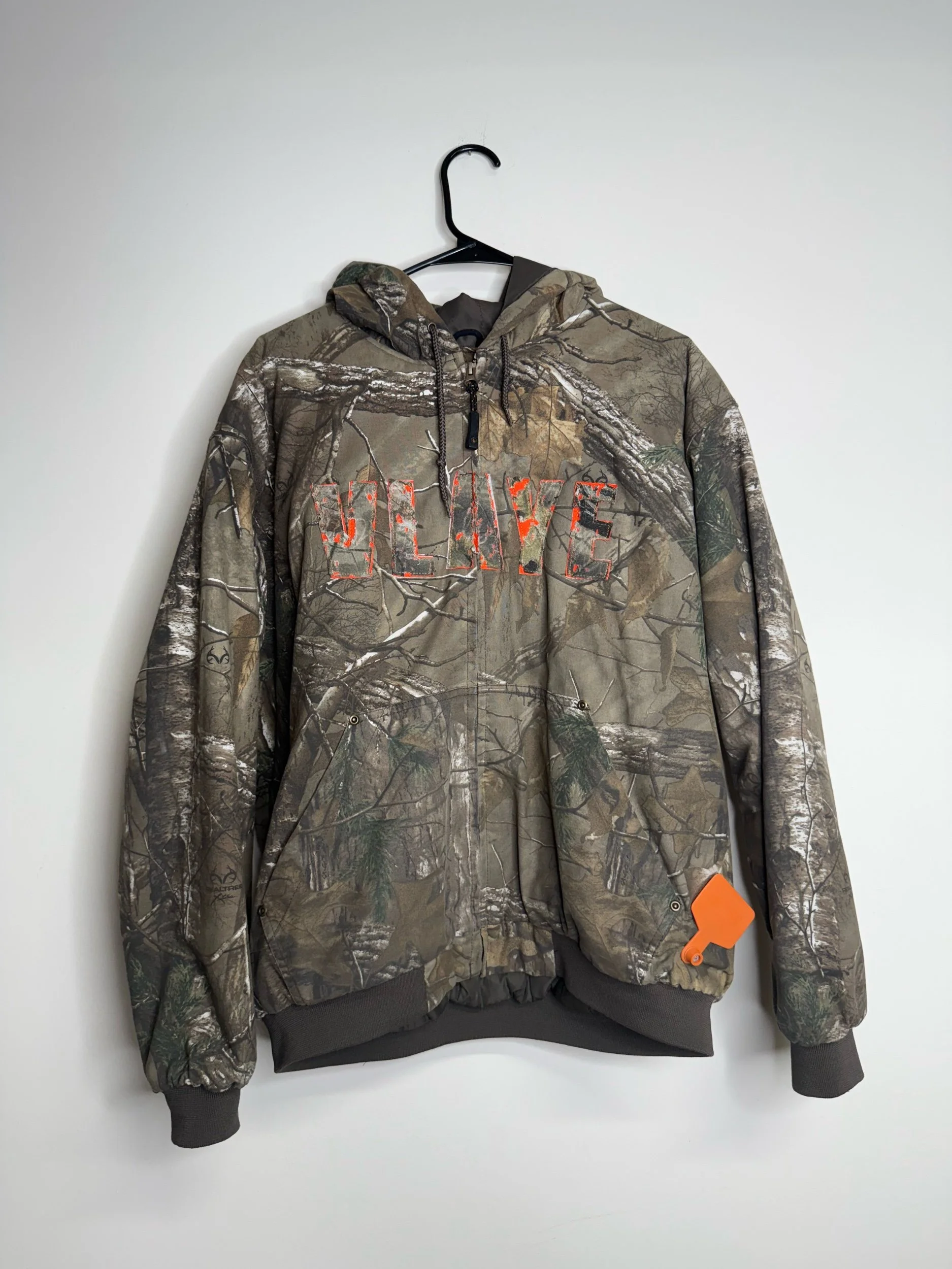 Image 1 of 3 Image 2 of 3 Image 3 of 3 Legend Logo Camo Jacket (Large) $95.00 Camo Zip Work-style jacket Legend LogoVLAYE appliqué Orange Livestock tag at the bottom Add To Cart Added! Camo Zip Work-style jacket Legend LogoVLAYE appliqué Orange Livestock tag at the bottom