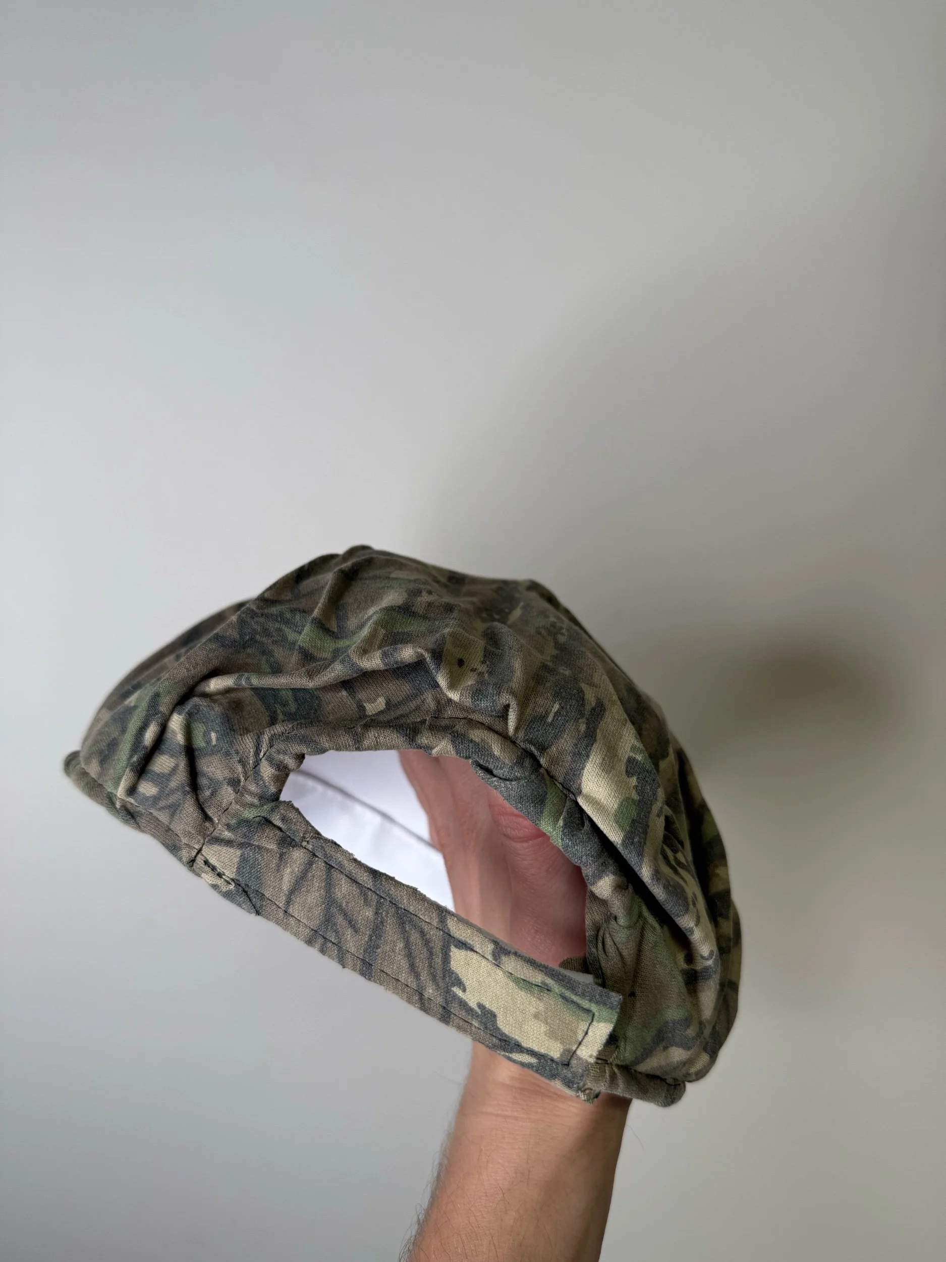 Image 1 of 5 Image 2 of 5 Image 3 of 5 Image 4 of 5 Image 5 of 5 Wrinkled Camo Vintage Hat $38.00 Hat made using the “Wrinkled Camo” Technique Cut from vintage camo t-shirtsVelcro Closure Add To Cart Added! Hat made using the “Wrinkled Camo” Technique Cut from vintage camo t-shirtsVelcro Closure